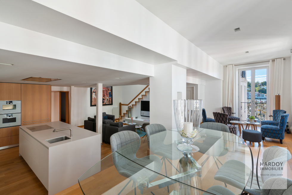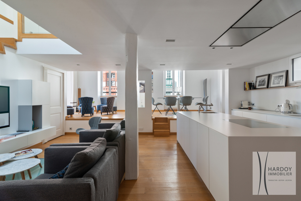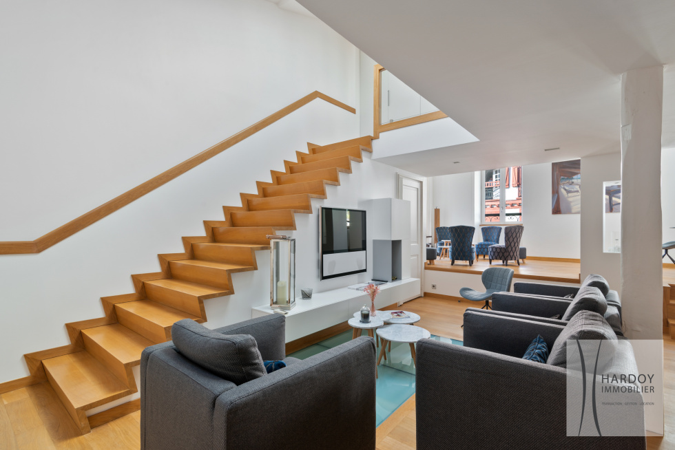 Au cœur du centre historique, magnifique appartement en duplex de 133.11 m² entièrement rénové avec des prestations de grande qualité. Aux derniers étages d'une belle bâtisse basque, cet appartement réunit le charme de l'ancien et le confort de la modernité avec une très belle pièce de vie ouvrant sur balcon, une cuisine équipée, 2 suites parentales, 2 chambres, salle d'eau et de nombreux rangements.
