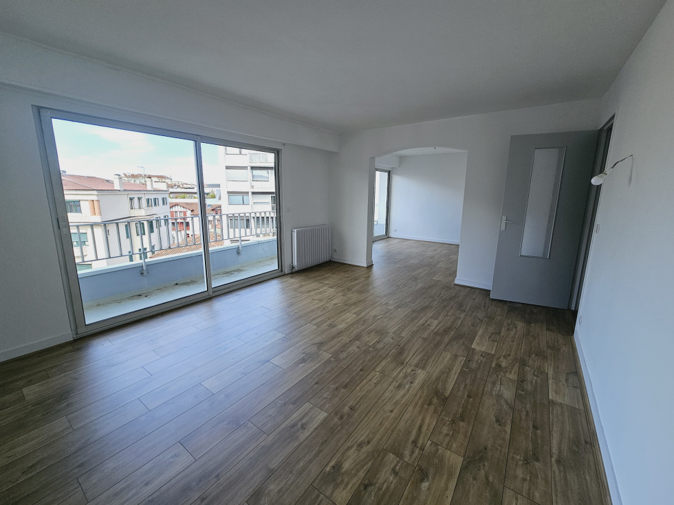 A côté de la poste de St Jean de Luz, au 4e étage avec acsenseur d'un résidence, très bel appartement T3 entièrement rénové de 77 m². Ce logement posssède de beaux volumes avec ujn double séjour ouvrant sur un balcon filant, une cuisine indépendante équipée ouvrant également sur un balcon plein sud, 2 chambres avec placard, une salle d'eau et un wc indépendant. Belle vue dégagée au-dessus des toits. Mode de vie tout à pied.