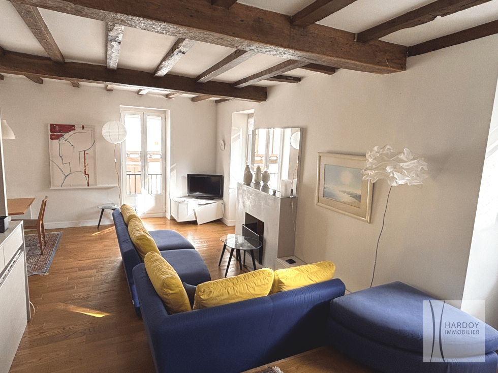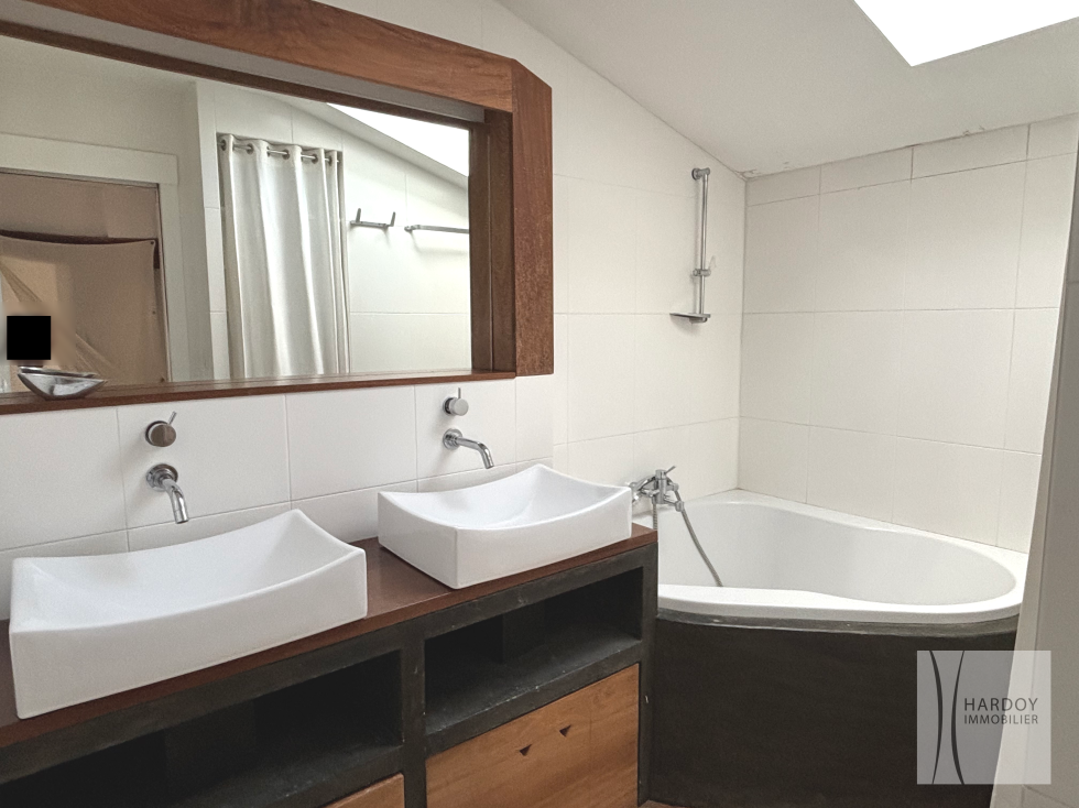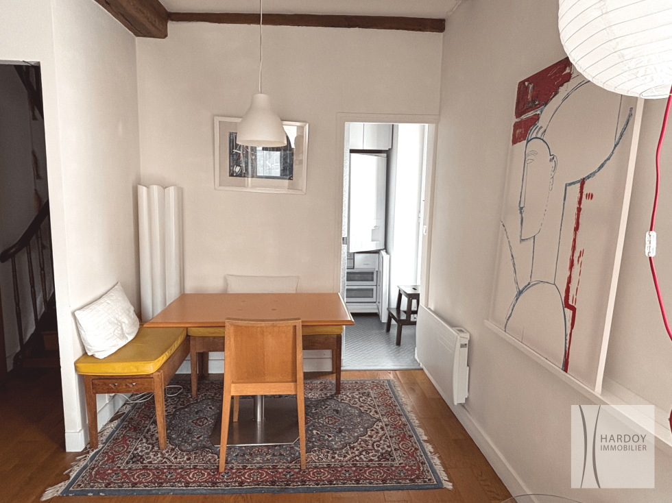 Dans une petite copropriété du centre-ville, un appartement en duplex d'une superficie de 85,19m² comprenant au premier niveau une entrée, un salon-séjour avec cuisine indépendante, un bureau et une salle d'eau. A l'étage, une chambre avec placards, une salle de bain et un grand dortoir pouvant être transformé en deux chambres.