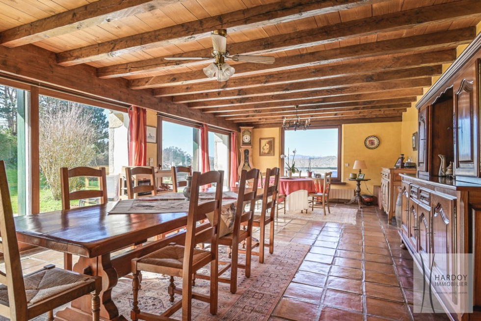 Dans un très bel environnement, une maison familiale de 325m² sur deux niveaux comprenant un appartement indépendant de 47m² situés sur un terrain de 10 000m². La bâtisse principale comprend : une entrée, salon, salle à manger, cuisine indépendante, 5 chambres, 5 salles d’eau, buanderie, bureau, cellier, WC. A proximité des commerces, cet ensemble bénéficie également d'un grand garage aménageable.