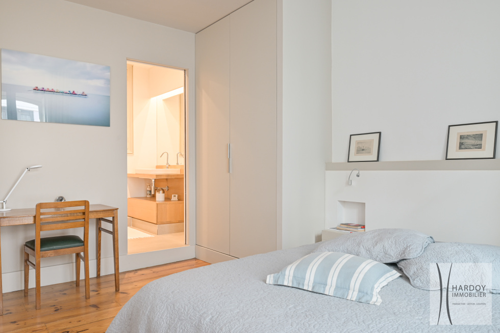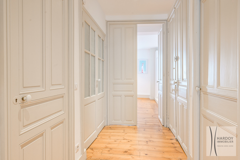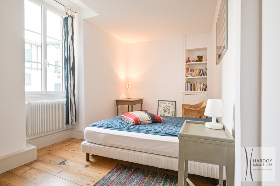 EXCLUSIVITE – Dans le centre-ville de Saint-Jean-de-Luz, appartement de charme de 122 m² avec place de parking privative. Situé au 2e étage, ce bien est composé de grands espaces permettant une belle capacité d’accueil et comprenant : salon d’hiver, salon d’été, salle à manger, cuisine, deux chambres, une suite parentale, deux salles de bain, dégagements, WC.