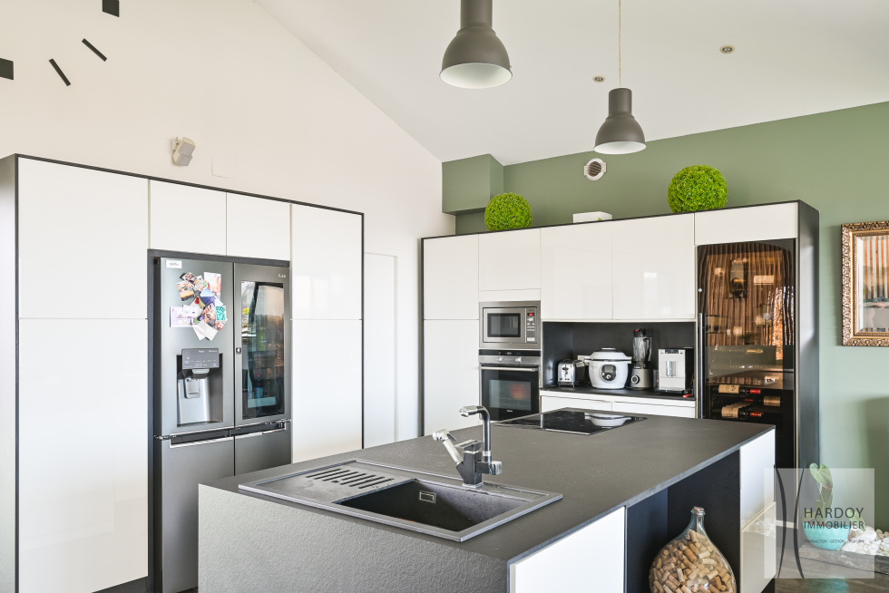 En rez de jardin, nous trouvons une suite parentale avec salle d'eau ainsi que 3 chambres avec 1 salle de bains, WC et buanderie.
