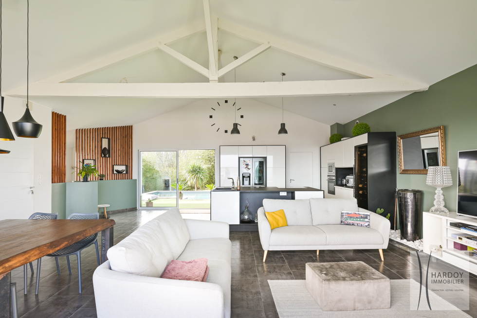EXCLUSIVITE - Située dans le quartier de Socoa, a proximité des commerces et de la plage, belle maison années 30 d'une superficie d'environ 220 m² sur un terrain de 1186 m² avec piscine. L'étage principal est composé d'une belle pièce de vie avec plafond cathédrale offrant une magnifique vue sur la Baie, une cuisine américaine ainsi qu'une suite parentale complète avec chambre, dressing et salle d'eau.