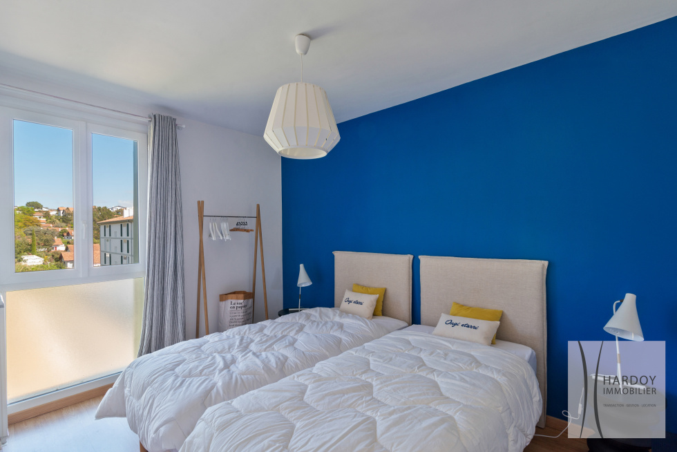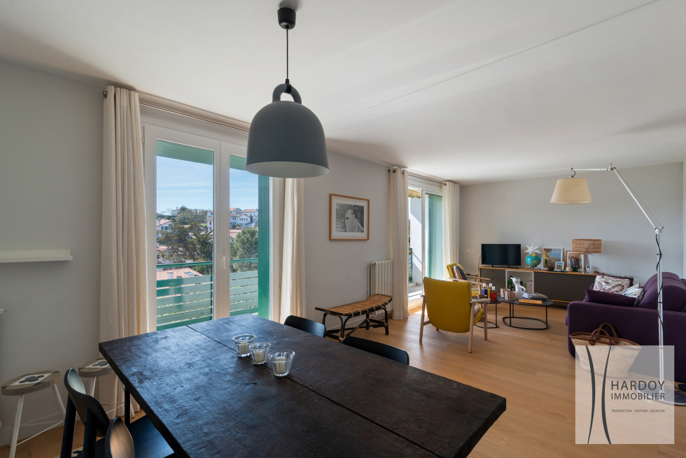 EXCLUSIVITE - Dans une copropriété située à environ 400 m de la grande plage de Saint Jean de Luz, un bel apartement traversant de 3 piéces d'environ 74 m² ouvrant sur un balcon de 13 m² offrant une belle vue dégagée.