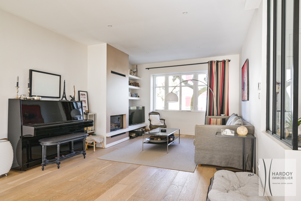 CO-EXCLUSIVITE - Quartier Aice Errota, belle villa familiale rénovée d’une superficie de 192m² sur une parcelle plate de 250m². Lumineux et confortable, ce bien offre un cadre de vie chaleureux avec sa pièce de vie ouvrant sur terrasse et jardin, une suite parentale de plain-pied, 5 chambres, une salle de bains et deux salles d’eau. La plage et les commerces sont accessibles à pied.