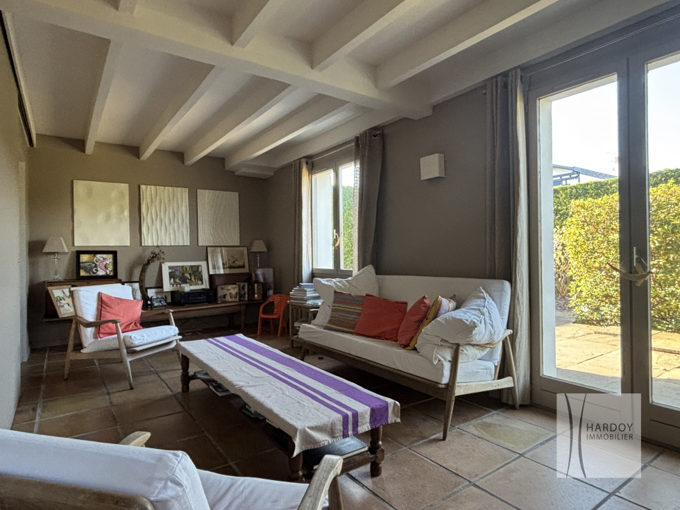 Quartier de Socoa, au calme et à proximité de la plage à pied, une maison familiale sur deux niveaux comprenant : entrée, séjour, cuisine, 4 chambres, 1 mezzanine, 1 salle d'eau, 1 salle de bain, 2 WC, grenier. Ce bien est complété par un garage, une terrasse et jardin d'environ 450m².