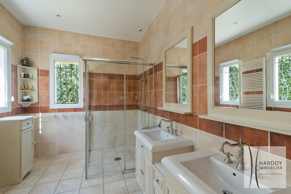Offrant de beaux volumes, ce bien lumineux est composé en rez-de-chaussée, d'un grand salon séjour et d'une cuisine ouvrant sur terrasse et jardin, une suite parentale avec salle d'eau complète et dressing, une buanderie, WC invités et un double garage. A l'étage, nous trouvons une autre suite avec salle d'eau complète, 2 belles chambres, un dressing et une salle d'eau avec WC.